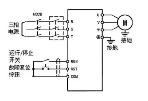 變頻器只要根據(jù)RUN接線端子給予上拉電阻,變頻器就可以啟動,開關斷裂時,與RUN接線端子變成低頻相同,變頻器停止運轉(zhuǎn)。