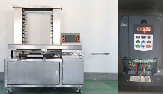 酥餅一體機(jī)由一臺(tái)搟面條和餡料的主機(jī)和兩臺(tái)配套的捏合機(jī)和成型機(jī)組成。與普通酥餅機(jī)相比,該機(jī)的主機(jī)集揉面機(jī)和餡料機(jī)于一體,使整個(gè)過程更加方便、順暢。過去,酥餅機(jī)產(chǎn)量低,人工成本高,消耗大。而變頻無級(jí)調(diào)速裝置可以實(shí)現(xiàn)皮餡任意配比,大大降低了勞動(dòng)需求,有效控制了生產(chǎn)中的消耗。