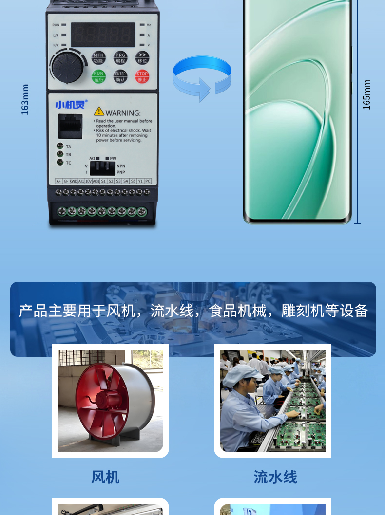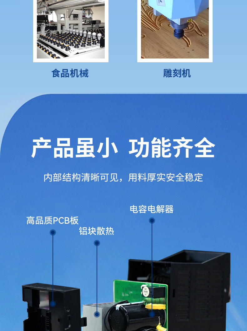 產(chǎn)品主要用于風機,流水線,食品機械,雕刻機等設(shè)備