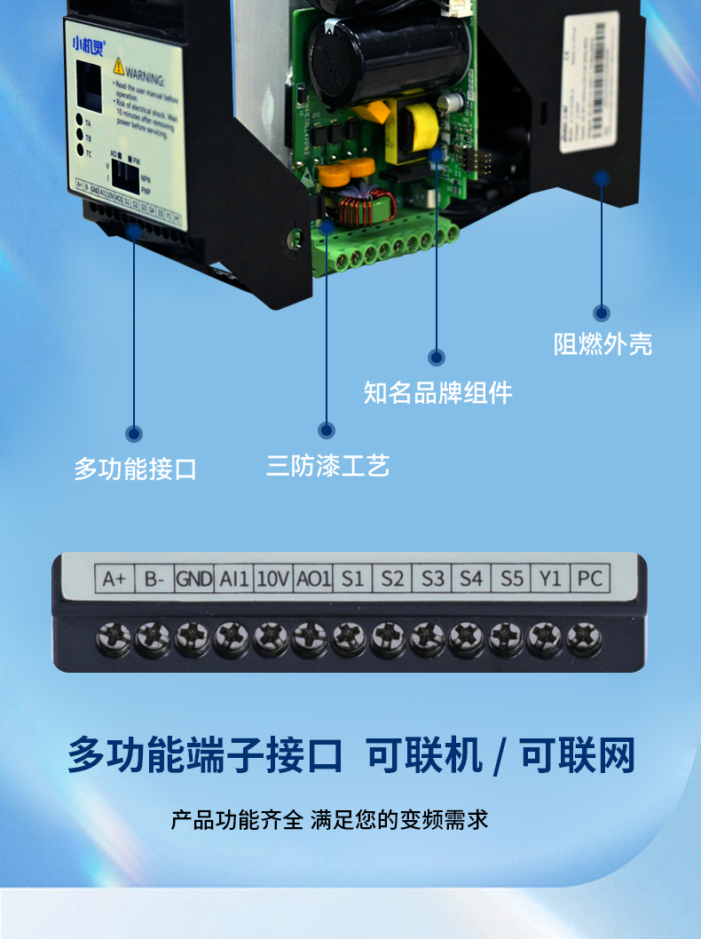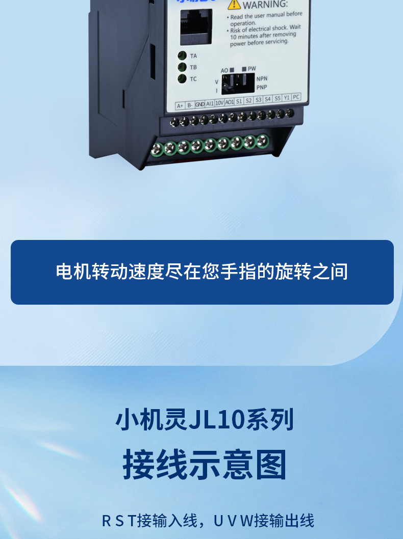 JL10變頻器新品上市,處處是升級,產(chǎn)品身材更小,正面觀看和一部普通智能手機的大小相似。產(chǎn)品雖小,功能齊全。多功能端子接口可聯(lián)機/可聯(lián)網(wǎng),產(chǎn)品外殼采用阻燃材料,耐高溫。