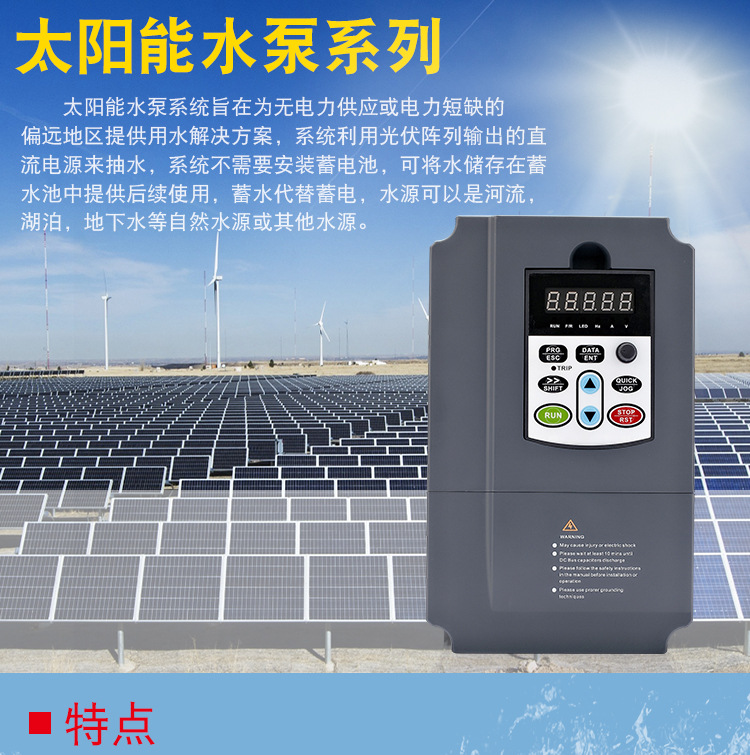 SK650系列變頻器是三科推出的針對光伏發(fā)電,驅動三相交流水泵的變頻器,它采用大功率點追蹤及久經(jīng)考驗的電機驅動技術以催化增大太陽能模塊的輸出功率,它將直流電直接逆變成三相交流電,可驅動各類交流水泵。同時它支持直流和交流輸入,當沒有太陽能時,該變頻器手動切換到單項或三相交流電輸入,如市電發(fā)電機或電池。SK650光伏水泵變頻器提供全方位保護,電機軟啟動及調速功能,即開即用,安裝方便。| 產(chǎn)品型號 | SKI650A075G-090G-4 | SKI650A090G-110G-4 | SKI650A110G-132G-4 |