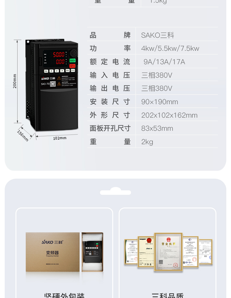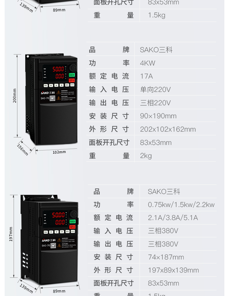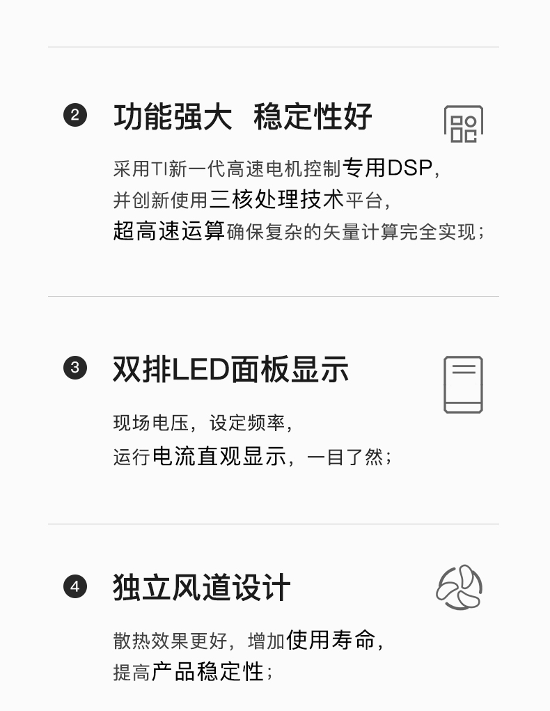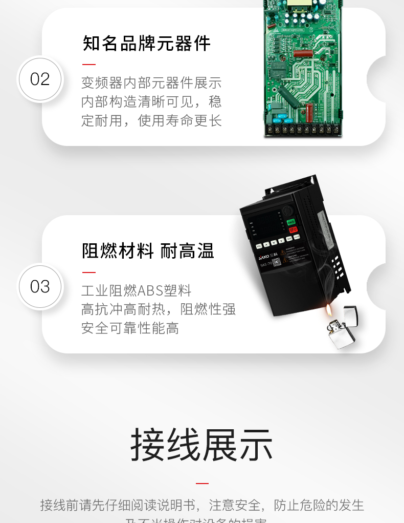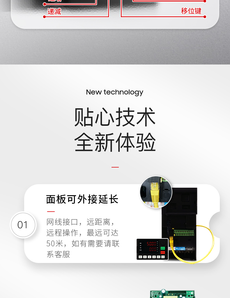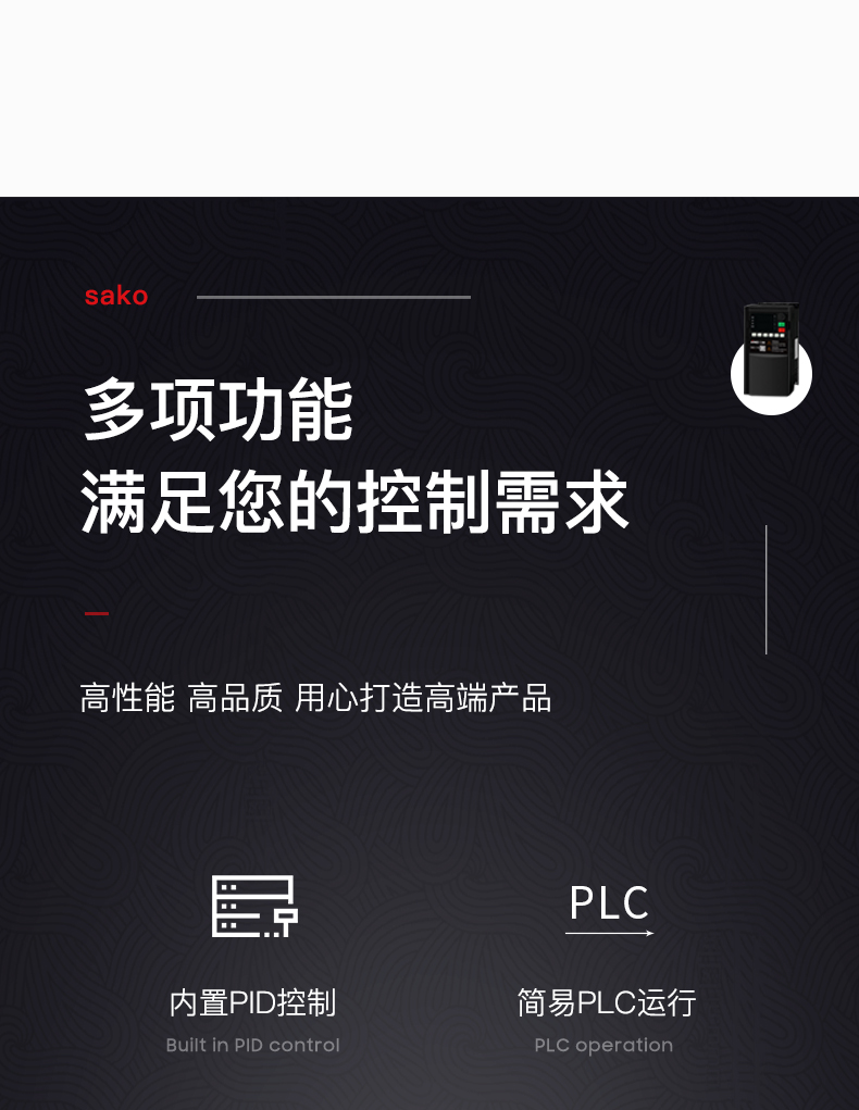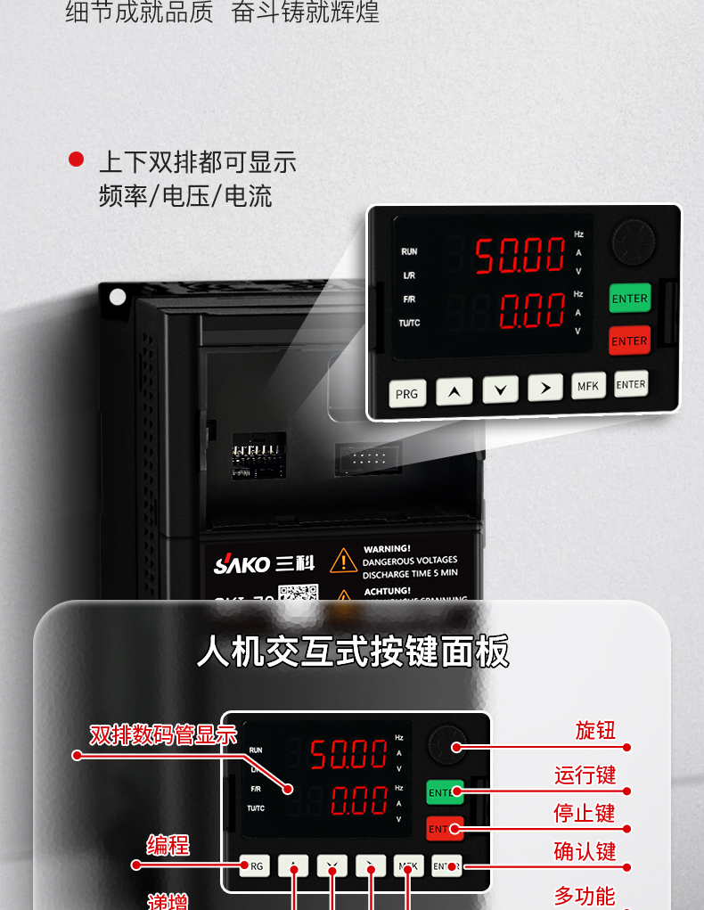 SKII70變頻器新品上市,處處是升級(jí),產(chǎn)品身材更小,功能更強(qiáng)性能穩(wěn)定,雙排LED顯示更直觀,獨(dú)立風(fēng)道設(shè)計(jì)產(chǎn)品性能更穩(wěn)定。可外接面板,實(shí)現(xiàn)遠(yuǎn)程控制,產(chǎn)品外殼采用阻燃材料,耐高溫。