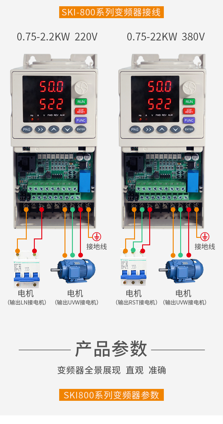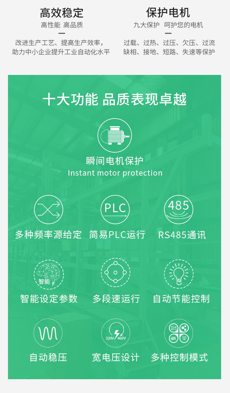 ⊙提供多種故障保護功能:過流、過壓、欠壓、過溫、缺相、過載等保護功能