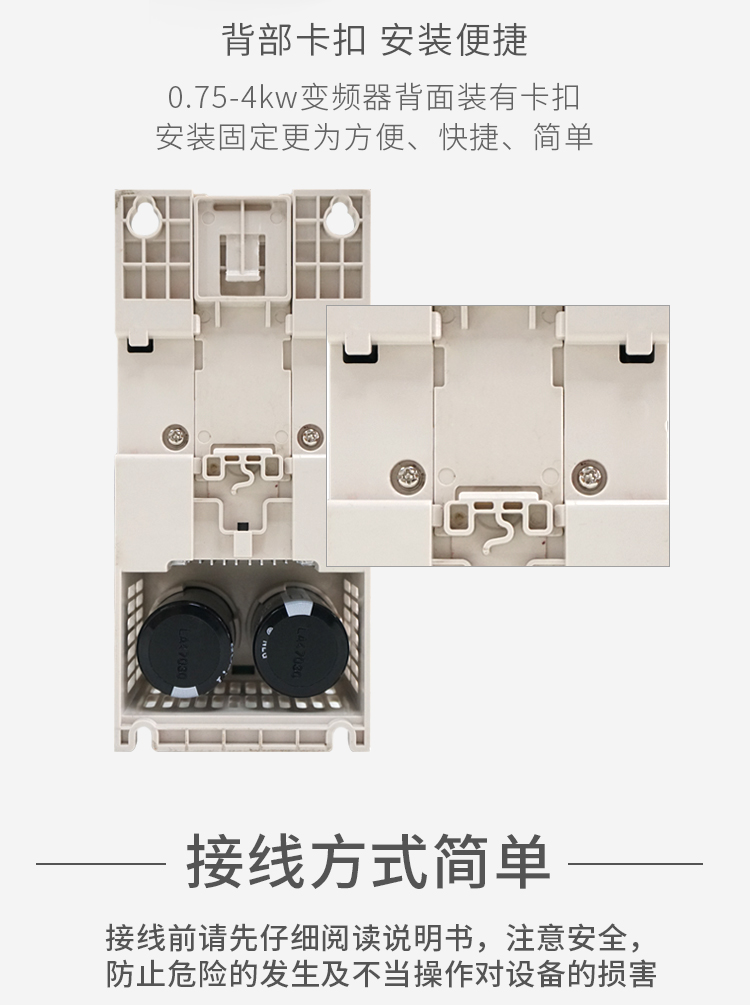 ⊙0.75KW~15kW各規(guī)格內置制動單元,如需快速停車,可直接連接制動電阻;