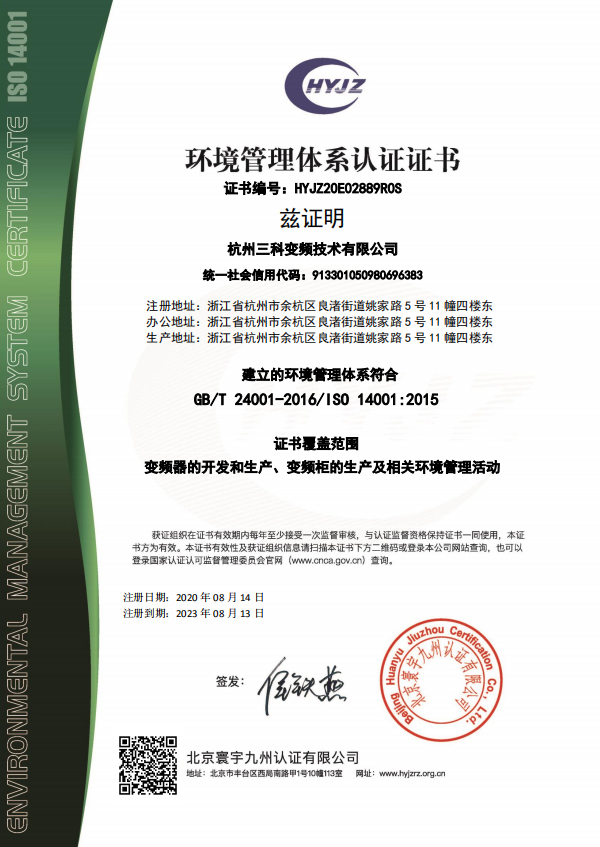 環(huán)境管理體系認(rèn)證證書