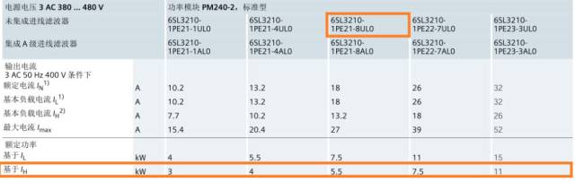 說明:作為恒轉(zhuǎn)距負荷,必須根據(jù)負荷的電力(HO)進行選擇。如下圖所示。在樣版D31.3中,選擇型號規(guī)格6SL3210-1PE21-8UL0PM240-2(未集成化過濾器)的驅(qū)動電源控制模塊。