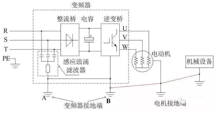 1、由于在變頻器內(nèi)有漏電流,為了防止觸電,變頻器和電機(jī)必須接地。