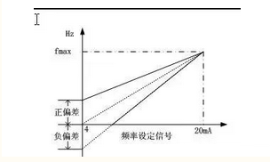 在給定信號(hào)從0增加至最大值的過(guò)程中(如4~20mA),給定頻率fX線性的從0增大至最大頻率的頻率給定線就是基本頻率給定線。如給定信號(hào)I=4~20mA, 要求對(duì)應(yīng)的頻率為0~50Hz,如圖1所示。