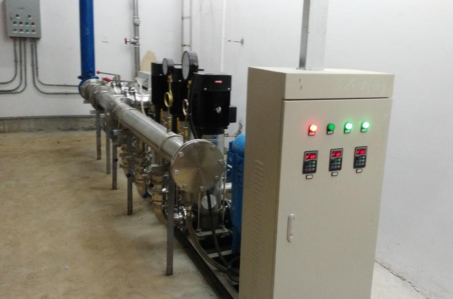 水泵VFD自動控制系統(tǒng)工作時,設(shè)備通過安裝在供水管網(wǎng)上的高靈敏度壓力傳感器來檢測供水管網(wǎng)在用水量變化時的壓力變化,不斷向VFD傳輸變化的信號,經(jīng)過微電腦判斷運(yùn)算并與設(shè)定的壓力比較后,向控制器發(fā)出改變頻率的指令,控制器通過改變頻率來改變水泵電機(jī)的轉(zhuǎn)速與啟用臺數(shù),自動調(diào)節(jié)峰谷用水量,保證供水管網(wǎng)壓力恒定,以滿足用戶用水的需求。