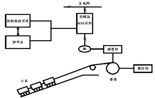 為克服傳統(tǒng)交流繞線式電機(jī)串電阻調(diào)速系統(tǒng)的缺點(diǎn),采用變頻調(diào)速技術(shù)改造提升機(jī),可以實(shí)現(xiàn)全頻率(0~50Hz)范圍內(nèi)的恒轉(zhuǎn)矩控制。對(duì)再生能量的處理,可采用價(jià)格低廉的能耗制動(dòng)方案或節(jié)能更加顯著的回饋制動(dòng)方案。為安全性考慮,液壓機(jī)械制動(dòng)需要保留,并在設(shè)計(jì)過(guò)程中對(duì)液壓機(jī)械制動(dòng)和制動(dòng)加以整合。 礦井提升機(jī)變頻調(diào)速方下如圖所示: