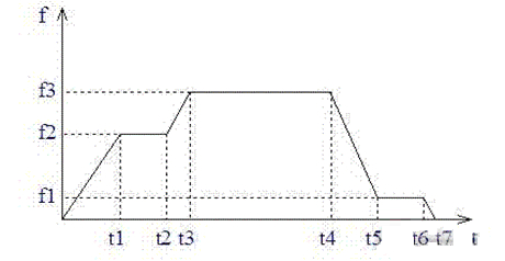 (4)第四階段 t3~t4:重車以頻率為f3的最大速度穩(wěn)定運(yùn)行,一般,這段過(guò)程最長(zhǎng)。