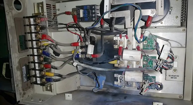 驅動器損壞有多種原因。一般來說,問題不外乎U、V、W三相輸出,或者輸出不平衡,或者輸出平衡但低頻抖動,開機報警等等。當一個VFD大電容熔斷,或者IGBT逆變模塊損壞時,驅動電路基本不可能完好,所以切不可更換好的保險絲或IGBT逆變模塊,這樣容易造成新更換的好器件再次損壞。這時要重點檢查下驅動電路上是否有火花痕。這里可以先拔下IGBT逆變模塊的驅動引腳,用萬用表測量六個驅動電路的電阻值是否相同。如果六個驅動電路的電阻值基本相同,并不能完全證明驅動電路狀態(tài)良好。然后,我們需要用電子示波器測量六個驅動電路上的電壓是否相同。給定啟動信號時,六個驅動電路的波形是否一致?如果你手里沒有電子示波器,也可以嘗試用數字電子萬用表測量六個驅動電路的DC電壓。一般來說,每個驅動電路未啟動時的DC電壓約為10V,啟動后的DC電壓約為2-3V。如果測量結果正常,基本可以判斷這個VFD的驅動電路是好的。然后將IGBT逆變模塊接在驅動電路上,但要記住,如果你沒有100%的把握,※安全的辦法是將IGBT逆變模塊的P從DC母線上斷開,間接連接一組串聯的燈泡或者一個功率更大的電阻,這樣可以保護IGBT逆變模塊在電路有大電流時不被大電容的放電電流燒壞。