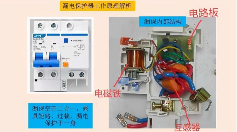 在線路上安裝漏電保護器,初級線圈與電力網(wǎng)線路連接,次級線圈與漏電保護器的脫扣器連接。