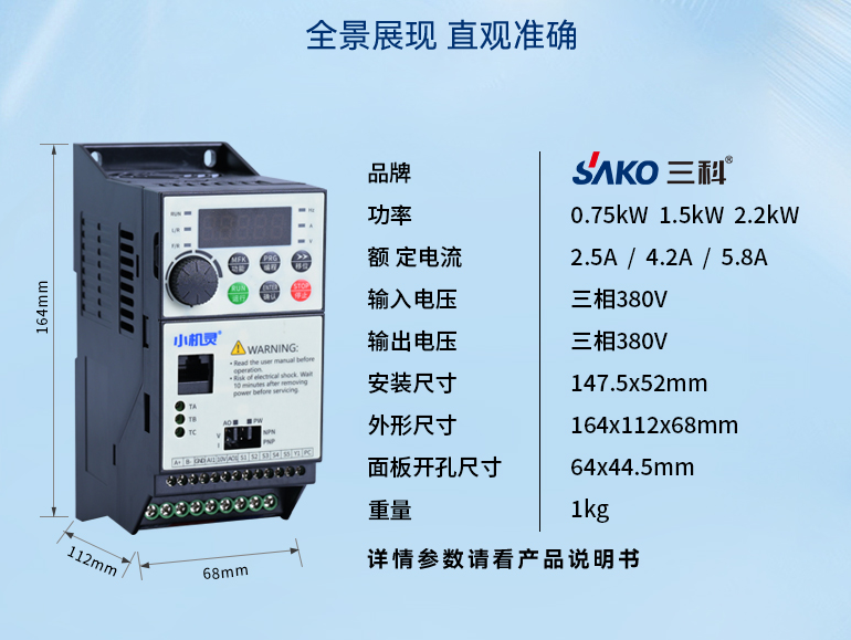 操作監(jiān)測便捷,高清面板實時顯示運行頻率、電流等參數(shù),指示燈區(qū)分設(shè)備狀態(tài),支持參數(shù)恢復出廠值與 10 次故障記錄查詢,便于維護排查。