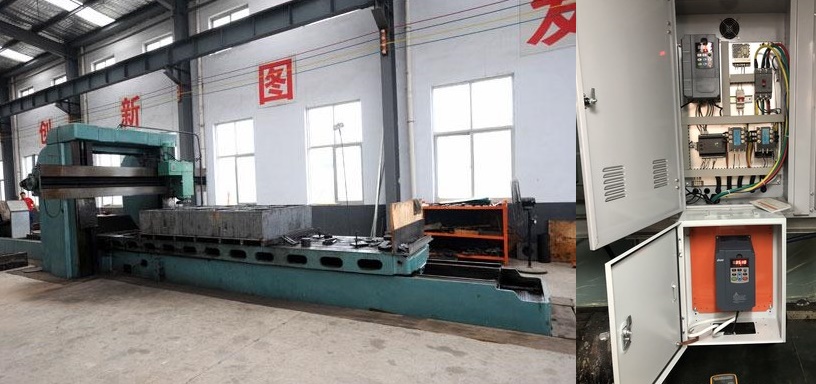 針對龍門刨床主傳動系統(tǒng)的結(jié)構(gòu)及控制特點,采用PLC和變頻技術(shù)對傳統(tǒng)的龍門刨床控制系統(tǒng)進(jìn)行改造。工作臺的主運動及進(jìn)刀機(jī)構(gòu)分別采用變頻器進(jìn)行控制,制動系統(tǒng)采用能量回饋裝置,全部工藝過程及相關(guān)信號由PLC進(jìn)行控制,與原系統(tǒng)相比較,改造后使用我司ES100系列變頻器調(diào)速系統(tǒng)主傳動裝置容量節(jié)省,傳動效率提高了一倍,調(diào)速范圍增大到1:35,靜差度3%,同時還大大簡化了拖動控制系統(tǒng),減小了維護(hù)工作量,經(jīng)濟(jì)性和可靠性都有了很大的提高。