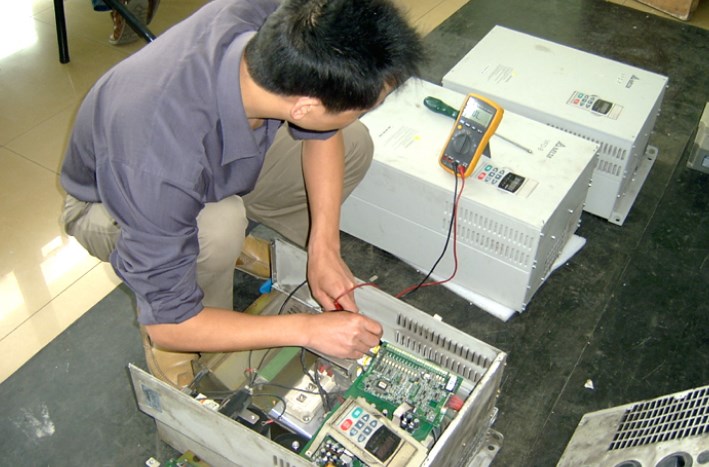 對故障變頻器系統(tǒng)目視觀察,以發(fā)現(xiàn)形態(tài)上的異常。這有時需要拆掉一些外部的蓋板之類的部件,但暫時不需要動及內(nèi)部的結構部件。目視檢查中應注意以下內(nèi)容:變頻器的前端整流元件有無爆裂