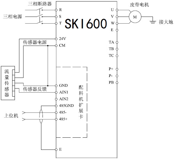 1. 系統(tǒng)生產(chǎn)所需各物料的流量由上位機(jī)(微機(jī)控制系統(tǒng))給出,并通過(guò)RS485網(wǎng)絡(luò)傳輸至SKI600;