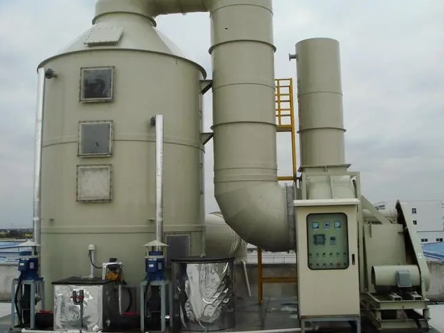 在工業(yè)廢氣處理中,酸霧廢氣通過風(fēng)管引入凈化塔,經(jīng)過填料層后,與氫氧化鈉吸收液進(jìn)行氣液兩相全接觸吸收中和反應(yīng)。凈化后的酸霧廢氣經(jīng)除霧器脫水除霧后,由風(fēng)機(jī)排入大氣。吸收液由塔底水泵加壓,塔頂向下噴淋,最后返回塔底循環(huán)使用。