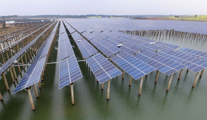2.“漁光互補(bǔ)”是漁業(yè)文化與光伏發(fā)電的結(jié)合。魚塘水面上方設(shè)置光伏板陣列,光伏板下方水域可進(jìn)行魚蝦養(yǎng)殖。光伏陣列還能為養(yǎng)魚提供良好的屏蔽效果,形成“上發(fā)電、下養(yǎng)魚”的發(fā)電新模式,可實(shí)現(xiàn)養(yǎng)殖與發(fā)電并行,提高綜合產(chǎn)值。