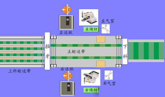 如上所示,水泥袋雙頭包邊機(jī)主要包括進(jìn)料輸送帶、擋牙器、主輸送帶、卸料輸送帶、工業(yè)縫紉機(jī)、送紙機(jī)、風(fēng)剪等幾部分。 其中送料輸送帶、主輸送帶、工業(yè)縫紉機(jī)均采用變頻器驅(qū)動,工作時要求其線速度一致。 上料輸送帶開機(jī)后一直在運(yùn)行,編織袋由工人手工放置在上料輸送帶上。 氣動限位器根據(jù)觸摸屏上設(shè)置的距離將袋子分開。 當(dāng)落袋距離大于設(shè)定距離時,主輸送帶和縫紉機(jī)停止,等待送料輸送帶上的編織袋到達(dá)停止位置,主輸送帶和縫紉機(jī)停止并 繼續(xù)運(yùn)行; 當(dāng)?shù)勾g的距離小于設(shè)定距離時,主傳送帶和縫紉機(jī)不會停止。 只有這樣,才能保證高效的生產(chǎn)經(jīng)營。