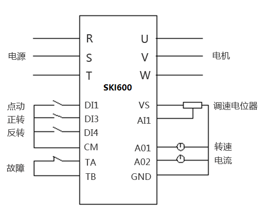 鉆樁機最核心的部件就是動力頭,一般動力頭是由兩臺電機共同拖動一個變速箱再鏈接鉆桿來完成鉆樁任務。由于每個工地的地下巖層情況不同,所以鉆樁機的動力頭需要足夠大的輸出扭矩,以保證適應各種各樣的巖層和土質(zhì)。這就要求驅(qū)動動力頭電機的SKI600低頻輸出力矩足夠大,鉆樁過程平穩(wěn)可靠,才能保證鉆樁機不夾鉆,混凝土不堵管。
